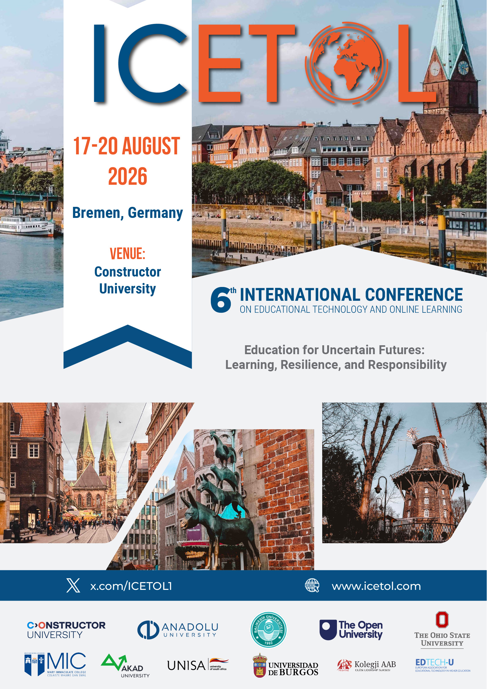 The International Conference on Educational Technology and Online Learning (ICETOL), which will be held for the sixth time in Bremen, Germany between 17–20 August 2026, will take place both face-to-face and online. The main theme of the conference is “Education for uncertain futures: learning, resilience, and responsibility.” Hosted by Constructor University, ICETOL 2026 will feature discussions, best practices, reflections, and shared experiences aligned with the conference theme, contributing to both national and international literature.